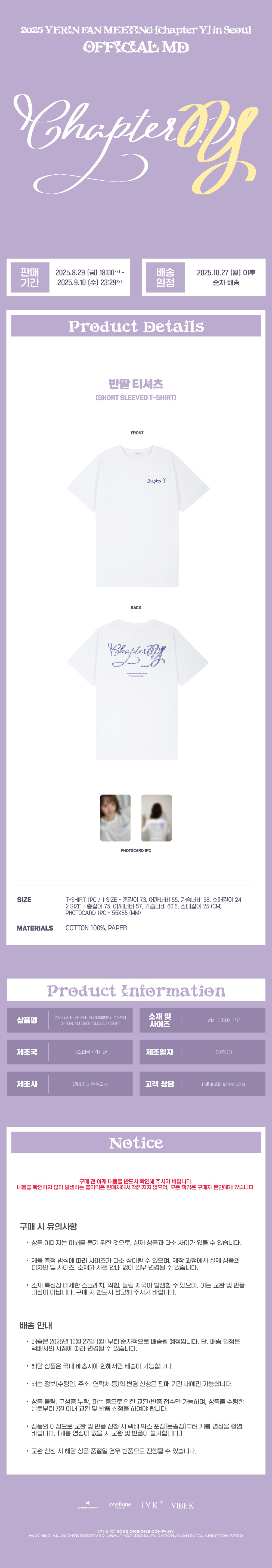 2025 YERIN FAN MEETING [Chapter Y] in Seoul 반팔 티셔츠