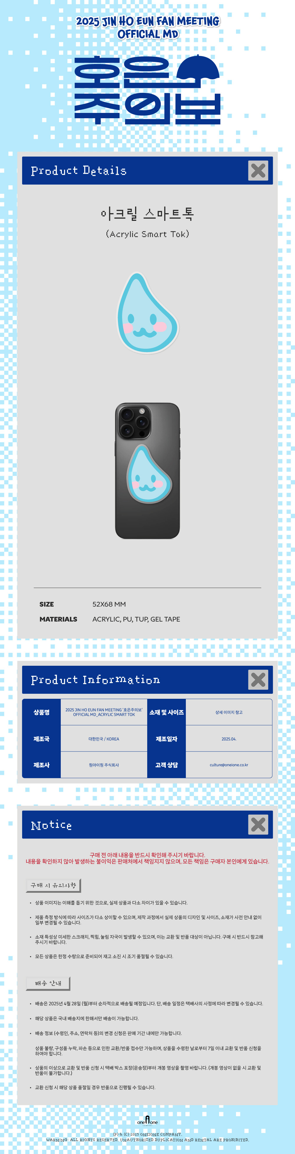 2025 JIN HO EUN FAN MEETING OFFICIAL MD 아크릴 스마트 톡