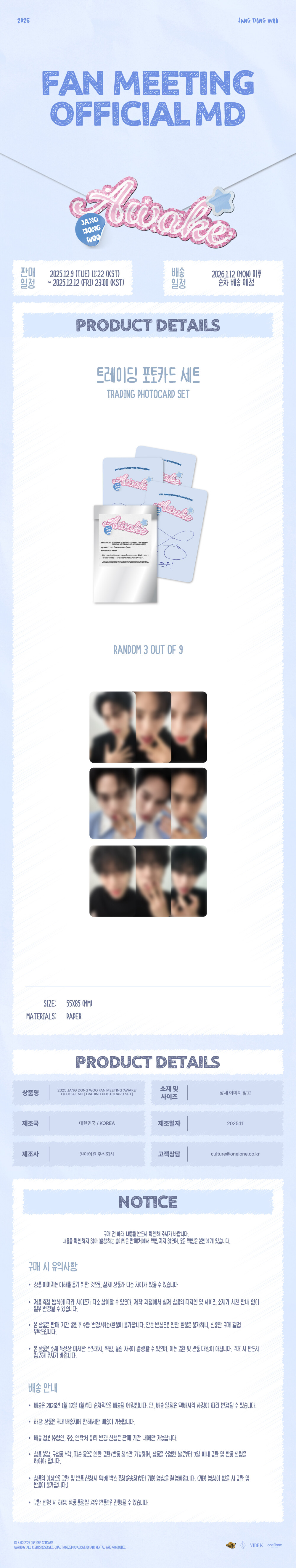 [온라인 판매] 2025 JANG DONG WOO FAN MEETING 'AWAKE' OFFICIAL MD [트레이딩 포토카드 세트]