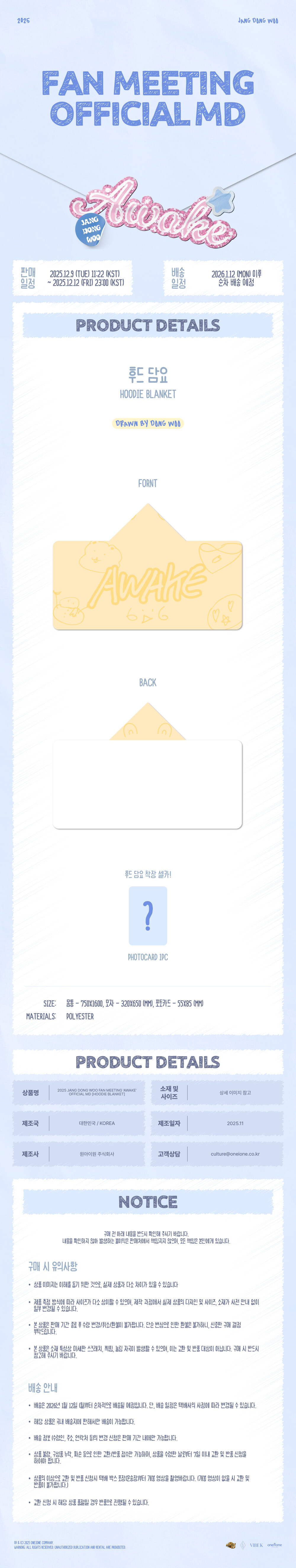 [온라인 판매] 2025 JANG DONG WOO FAN MEETING 'AWAKE' OFFICIAL MD [후드 담요]