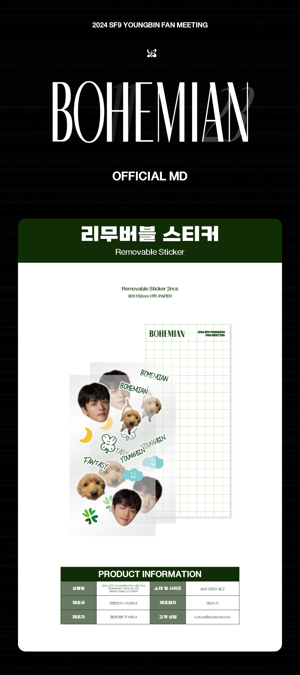 [국내 배송] 2024 SF9 YOUNGBIN FAN MEETING 'BOHEMIAN' OFFICIAL MD 리무버블 스티커